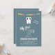 Convite para a festa do meu primeiro dente com um desenho de um grande dente branco com um sorriso kawaii fofo e olhos grandes felizes.