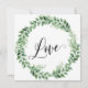 Usando uma fonte de roteiro moderna, elegante e circular, criei uma sobreposição gráfica que diz "After the Wedding Celebration", para complementar a sofisticada fonte serifada em maiúsculas usada para seus detalhes. A mesma "fonte sofisticada" foi usada para colocar a palavra "Love" no verso. O texto é acentuado com um aro de folhas e ervas em aquarela verde. Todas as camadas foram adicionadas separadamente e deixadas desbloqueadas para lhe dar um controle significativo do design; faça as modificações necessárias para criar o cartão que você imagina. Se necessário, você pode girar o aro para melhor acomodar sua redação. E por favor, não hesite em entrar em contato comigo se precisar de ajuda para personalizar ou tiver pedidos especiais. // 119 //