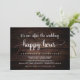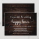Linda festa de Happy Hour após o casamento, Convite, Anúncio de casamento / cartão de convite, com tema de fundo de madeira escura rústica, design simples e minimalista. Isso é perfeito para o seu casamento e festa de celebração pós-casamento. Adicione seus detalhes na fonte / letra correspondente.