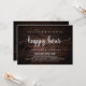 Convite de Happy Hour após o casamento, Anúncio / Convite de Casamento Fugitivo, em tema de fundo de Madeira Escura Rústica, design simples e minimalista. Isso é perfeito para o seu casamento e festa de celebração pós-casamento. Adicione seus detalhes na fonte / letra correspondente.