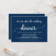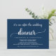 Lindo depois do jantar de casamento, Convite, Anúncio de Fuga de Casamento / cartão de convite, em Azul Naval Rústico, design simples e minimalista. Isso é perfeito para o seu casamento e festa de celebração pós-casamento. Adicione seus detalhes na fonte / letra correspondente.