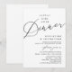 Anuncie e compartilhe seu final feliz com estilo com nosso design de tema preto e branco romântico moderno (Jantar de final feliz) para convite de celebração de casamento íntimo. É ideal para casais que decidiram celebrar o seu melhor dia. Com um design sofisticado e divertido, este convite certamente irá definir o tom para um evento inesquecível. O cartão de convite apresenta um tema de design de letra moderno e minimalista, adicionando um toque de elegância atemporal à sua celebração. Desenhado por TeeshaDerrick
