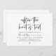 O moderno Black Script temático, cartão de convite para elopementos de casamento (Felizmente, para sempre após a Celebração). É perfeito para sua recepção de elopemento de casamento/festa de celebração de posto. Adicione seus detalhes em caracteres pretos / letras correspondentes.