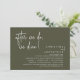 Anuncie e partilhe a sua alegria para sempre em estilo com o nosso moderno tema design (depois de nós, jantamos!) cartão de convite à celebração de elopementos de casamento. É ideal para casais que decidiram celebrar o seu melhor dia. Com seu design sofisticado, mas lúdico, este convite certamente define o tom de um evento inesquecível. O convite apresenta um design moderno, tema verde-oliva, acrescentando um toque de elegância eterno à sua celebração. Projetado por TeeshaDerrick