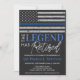 A Lenda Se Aposentou! Convites de aposentadoria da polícia de linha azul fina. Celebre anos de serviço dedicado e convide amigos e familiares para a sua festa de aposentadoria na polícia com este Convite para aposentadoria da Polícia de Sinalizador Azul Thin. DESIGN americano na Polícia de, cor da moda vintage em preto e design azul em couros falsos. Veja nossa coleção para combinar presentes de aposentadoria da polícia, favoritos para festas de aposentadoria da polícia e suprimentos. COPYRIGHT © 2021 Judy Burrows, Black Dog Art - Todos Os Direitos Reservados. Convite de festas de Sinalizador de Linha Azul Fino de Reforma de Legenda da Polícia