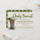Convide seus hóspedes em estilo com este convite moderno com uma fotografia de um coquetel clássico de mint julep. A frente incorpora texto em tons de verde, cinza e cremoso bronzeado. As palavras 'Derby Brunch' são criadas como um trabalho de arte que você pode excluir e substituir por uma linha de texto se quiser alterar o título da sua parte. O texto restante é totalmente personalizável usando modelos fáceis e fornecidos. O verso é impresso com um estilo clássico e divertido em tons de verde e cinza, dando um olhar de corrida tradicional ao convite. Perfeito para Derby Day ou qualquer evento temático de corrida de cavalos!