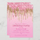 Convite Derramamento de brilho rosa e Dourado no aniversár