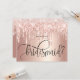Convide seu melhor amigo para ser sua dama de honra com este convite especial, moderno, mas elegante, "será minha dama de honra" com pingos de ouro rosa e belas fontes de caligrafia de escrita
