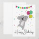 Saudação de aniversário Feliz Aniversário com balões e coala para o aniversário das crianças. Um cartão divertido e colorido para o aniversário de uma criança. Para amigos que amam coalas.