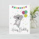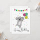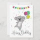 Saudação de aniversário Feliz Aniversário com balões e coala para o aniversário das crianças. Um cartão divertido e colorido para o aniversário de uma criança. Para amigos que amam coalas.