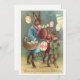 Ilustração antiga de desejos de Páscoa vitorianos, imagem de feriado que apresenta uma coelha segurando uma cesta com ovos de Páscoa coloridos e dois coelhinhos segurando luzes de ovo de Páscoa.
