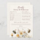 Fralda Raffle Bee Wildflower Chá de fraldas Predictions Advice Figuras apresenta um design de aquarela moderno com flores silvestres amarelas e abelhas produtoras de mel com o seu jogo de chá de fraldas com predições, conselhos e desejos na tipografia moderna e elegante do roteiro de caligrafia. Criado pelo Evco Studio www.zazzle.com/store/evcostudio