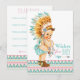 Desejos para cartão de chá de bebê tribal com adorável bebê menina vestindo roupas e mocassins indígenas americanos em um fundo pastel Azteca. Esses desejos tribais para bebê são facilmente personalizados para o seu evento, basta adicionar seus detalhes no estilo de fonte, cor e texto de sua escolha. Basta dar aos seus convidados para preencher e guardá-los como lembrança para o bebê. Você também pode adicionar uma cor de fundo.