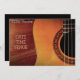 Um cartão do convite apropriado para um considerando do concerto da guitarra ou da guitarra com uma imagem elegante e profissional de uma fotografia da arte da guitarra com texto customisable. Este convite do considerando da guitarra podia ser usado por professores da guitarra para concertos do estudante ou para pais de músicos novos para convidar seus amigos e famílias a um desempenho. Estes cartões podiam igualmente ser usados em uma capacidade profissional do concerto com detalhes musicais do desempenho incluído na parte de trás do cartão.