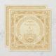 Este cartão de número de mesa de casamento celta apresenta motivos de animais entrelaçados celtas na parte externa da borda frontal e nos cantos que cercam o tradicional anel Claddagh irlandês com as mãos segurando um coração (de desenhos espirais celtas) com uma coroa que simboliza amizade (mãos), amor (coração) e lealdade (coroa). O anel é completado com o tradicional trabalho de nó celta. A textura do fundo é derivada de um antigo manuscrito medieval. A parte de trás também apresenta essa textura de fundo medieval e também tem uma borda de nós celtas em dourado clássico.