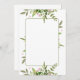 Este é um convite de casamento em branco para você personalizar; apresenta sprays de folhas em tons de verde-oliva e sage, com pequenas flores cor-de-rosa e um retângulo central para adicionar sua própria redação.