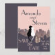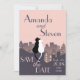 Layout de Salve a Data, com elemento de gatos e vista urbana. Desenho de desenho animado, apropriado para anúncios de casamento, noivados. O texto deve ser personalizado.