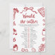 🍕 traga um traço de charme italiano para seu chá de fraldas com esta Pizza italiana vermelha e Pasta Doodle Ela Preferencialmente Jogo! Desenhado à mão com fatias de pizza branca, taças de massas e sotaques vermelhos festivos, este jogo divertido terá hóspedes rindo e adivinhando enquanto tentam entender as preferências da futura mãe. Perfeito para uma celebração aconchegante inspirada na Itália, é fácil de impressão e uma maneira divertida de quebrar o gelo! 🎉 ❤️ 👶