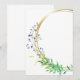 Este é um convite de casamento em branco para você personalizar; apresenta um spray floral, folhas e um círculo dourado