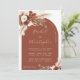 Este elegante convite para o casamento do boho apresenta dois (2) belos buquês florais do Terracotta rustic pampas num tema de cor do boho terra do deserto. Ela é acompanhada da redação de uma caligrafia moderna e de uma simples letra de serifa de bloco e tem uma foto em forma de arco. Além disso, você pode adicionar um Código QR às costas para direcionar seus convidados para RSVP seu evento de casamento. Esta floral cromática rustica de terracota é perfeita para qualquer um que planeje um Boho, deserto, outono ou um casamento rústico no quintal. Funciona bem com outros temas de casamento também e definitivamente um excelente extra ao seu casamento. Este tema de cores de tons de terra de boho do casamento no deserto está disponível em quatro cores. Você pode personalizar o convite com sua foto e seu código QR — basta substituí-lo no verso com o seu na caixa "personalizar este modelo". Entretanto, você pode personalizar e personalizar o convite para ajustado das necessidades do seu evento de casamento — basta clicar em personalizar o convite. Note-se que os termos "juntamente com as famílias" e "acolhimento a seguir" na frente e "Details+rsvp" no verso, juntamente com os buquês florais, são fixos e não podem ser editados, movidos ou suprimidos. Você pode personalizar facilmente o convite com o texto como um download digital e enviá-lo eletronicamente e compartilhá-lo com seus convidados através de mensagem de texto, email ou mídia social. Ou também pode optar por enviar/postar o convite relativo aos seus detalhes aos seus convidados. Ou você pode receber ambos — convite impresso e receber o convite em formato digital como um download instantâneo.