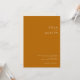 Este Deserto Simples | Burn Orange O convite é exatamente o que você está procurando para completar seu casamento russo moderno. Perfeito para uma vibração ocidental minimalista ou para uma sensação boêmica retrorreflectora. O guião branco natural mínimo verdadeiramente pop com este fundo colorido do outono. Você pode optar por mantê-lo como está ou personalizá-lo com seu próprio trabalho de arte ou fotos. Role pela coleção para selecionar outros itens que farão o seu casamento outono cantar com autenticidade!