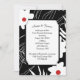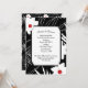 Design floral branco contemporâneo com centros vermelhos em preto para convite de casamento. O texto é editável. Pode ser usado para o convite de Cerimônia de Renovação de Vow.