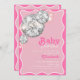 Celebrar a mãe a estar em estilo deslumbrante com este convite de chá de fraldas divertido e vibrante! Apresentando bolas cintilantes de disco, um design cor-de-rosa-chico e espaço para personalizar o nome e os detalhes do evento, este convite é perfeito para uma festa que promete brilhar. Ideal para um chá de fraldas moderno, revelação de gênero, ou celebração que é tão fabulosa quanto o convidado de honra!