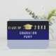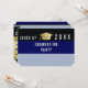 Design na moda e formando moderno com faixas horizontais azul e preto, com linhas de texto personalizadas para adicionar todas as informações que os seus convidados precisarão para se juntarem à sua festa de formatura