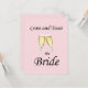 Venha brindar à Noiva com taças de champanhe e todas as informações para o seu evento no verso deste convite cor-de-rosa lindo.