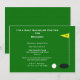 Este convite de despedida de solteiro de golfe apresenta um green com aparência texturizada e uma bola de golfe em direção ao 18º buraco. Um convite divertido para uma despedida de solteiro de golfe! Copyright henishouseofpaper