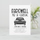 Se você ama simples, este simples convite de estilo é certo para você. O convite apresenta um design elegante, com um fundo macio e branco com um carro vintage No centro, os detalhes da festa são lindamente escritos em uma fonte vintage de bloco preto, exuando um ar de sofisticação. Bem-vindos convidados e honrem sua aposentadoria, com este convite da festa de aposentadoria. A cor e o texto em segundo plano são editáveis.