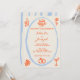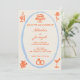 Este convite de casamento é perfeito para o seu casamento se você está procurando um convite elegante, único e fácil de editar. Um convite de casamento com modelo elegante, simples, minimalista, azul e laranja. Como você vê, apresenta um fundo clássico cremoso simples. E os primeiros nomes da noiva e do noivo escritos à mão em laranja brilhante e informações em letra cursiva. E moldura azul céu pintada à mão e bolo laranja, alianças de casamento, flor, pegadores, garrafa e copos. Acessível e também é um e-convite digital eletrônico se você quiser enviá-lo por texto ou e-mail. Todas as informações são personalizáveis clicando no botão personalizar. Então pegue e faça-o seu para que você faça seus convidados se sentirem engajados e animados.