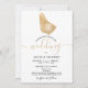 Planejando o casamento no destino romântico em Barbados? Convide seus convidados com este lindo convite com mapa de Barbados em ouro e seu destino personalizado marcado com o coração móvel.