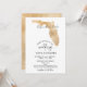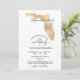 Planejando o casamento no destino romântico? Convide seus convidados com este lindo convite com este mapa da Flórida em ouro e seu destino personalizado marcado com o coração móvel.