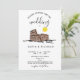 Planejando o casamento num destino romântico? Convide seus convidados com este convite moderno e lindo com o Coliseu de Roma, Itália, desenhado à mão de forma única. Desenho de arte de linha moderna