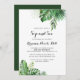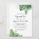 Este destino tropical greenery sip e ver convite é perfeito para um simples encontro com a festa do bebê. A design apresenta palma verde de cor d'água pintada à mão e folhas de bananeira bem organizadas em belos buquês.