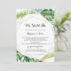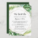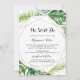 Este destino geométrico que ainda fazemos é perfeito para uma cerimônia de renovação e celebração de votos tropicais. O design apresenta palma verde-aquarela pintada à mão e folhas de bananeira bem organizadas em belos buquês, enfeitando um quadro geométrico dourado.