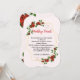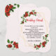 Cartão de Detalhes de Recepção de Casamento Floral Geométrico Vermelho com Brilho Dourado e Marfim