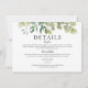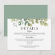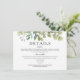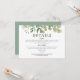 Cartão de informações de acomodação com detalhes de casamento elegantes de aquarela verde. O design apresenta um layout de texto elegante e moderno. Para fazer alterações avançadas, selecione a opção "Clique para personalizar ainda mais" em Personalizar este modelo.