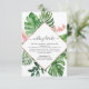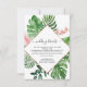 Folhas de Palmeira Verde Tropical e Flores Rosa Bege Aquarela com Forma Geométrica de Folha de Ouro Rosa Falso Cartões de Detalhe de Casamento de Primavera ou Verão - inclui uma bela e elegante tipografia de roteiro com flores botânicas tropicais modernas e folhagens para a celebração do dia de casamento especial.
