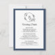 PLACA DE ENCERRAMENTO DE DETALHES DE CASAMENTO DE PEQUENO TAMANHO | design de cartão de casamento simples, elegante e moderno com uma fronteira azul marinho clássica, as suas iniciais monográficas e o seu texto de convite. Recepção de casamento, acomodações de hotel e detalhes do site com código QR (ou excluir campos se não necessário). Criada da coroa foliar foliar desenhada à mão e concebida para uma moldura monográfica contemporânea com uma ampersand caligráfica. Concebido por artista e designer com licença internacional, Audrey Jeanne Roberts, copyright.
