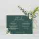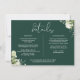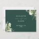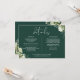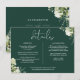 Um cartão de informações de detalhes de casamento floral verde esmeralda elegante personalizado com seus detalhes especiais em tipografia estilosa e seus nomes e data de casamento no verso. Projetado por Thisisnotme