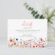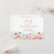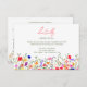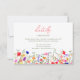Adicione um toque de elegância boêmica ao seu cartão de detalhes do casamento com o nosso design de flores selvagens Coloridas Coloridas Moderno Chic Boho Bright. Apresentando flores botânicas de matizes cor-de-rosa, vermelha, verde e roxa inspiradas em flores silvestres e jardins rústicos de aquarelas com um verde sutil e uma tipografia moderna de matizes.