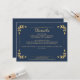 "Cartão Elegante de Detalhes do Casamento de Greenery Clássico do Marinho Dourado." Dusty marinho azul e Deco de Arte dourada, Art Nouveau inspirou design de estilo tipográfico simples, mas elegante, que é feito de uma reluz dourada para um brilhante design de arte. Este conjunto de convites foi projetado para misturar e combinar e foi criado por uma artista e designer de produtos com licença internacional, Audrey Jeanne Roberts, copyright.