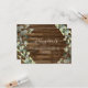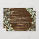 Cartão de Detalhes do Casamento de Primavera com Aquarela Botânica de Suculentas e Vegetação de Eucalipto em Fundo de Madeira Rústica ao Ar Livre - inclui tipografia de script bonita e elegante com folhas botânicas modernas e vegetação para a celebração especial do dia do Casamento.