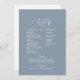 Cartão de Gabinete de Detalhes de Casamento. Elegante. Azul e Branco. Moderno. Engraçado. Tipografia Branca.