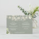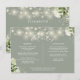Um cartão de informações de detalhes de casamento verde sálvia com luzes de corda florais elegantes personalizado com seus detalhes especiais em tipografia estilosa e seus nomes e data de casamento no verso. Projetado por Thisisnotme
