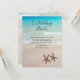 Cartões de detalhes do casamento na praia com dois asteroides e imagem de fundo de cena de praia. Inclui detalhes do evento com fonte de letra moderna para o título e fonte impressa para as informações. Água do oceano tropical e areia da praia são o pano de fundo para sua redação personalizada. Os cartões vêm em muitos tamanhos e este design e redação podem não caber corretamente em todos. Será impresso como no preview.