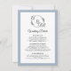Design moderna, simples e elegante com uma adorável e empoeirada borda azul, suas iniciais de monograma e seu texto de convite. Recepção de casamento, acomodações de hotel e detalhes do site com código QR (ou excluir campos se não necessário). Criada da coroa foliar foliar desenhada à mão e concebida para uma moldura monográfica contemporânea com uma ampersand caligráfica. Concebido por artista e designer com licença internacional, Audrey Jeanne Roberts, copyright.