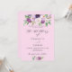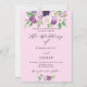 Um fundo rosa. Decorado com flores e folhagens roxas em aquarela. Personalize e adicione seus nomes e detalhes da festa.